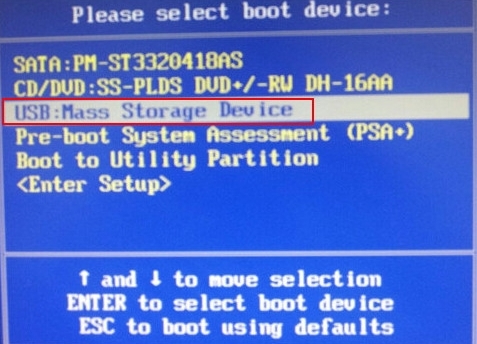 2、進入BIOS之后,選中U盤所在選項,直接按回車就可以了