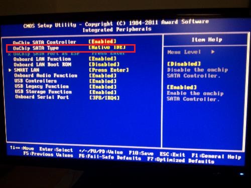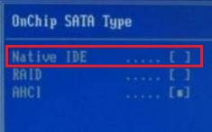 3、在Onchip SATA Type里面就是硬盤模式設置項了,我們選擇Native IDE,把它放到第一位就可以了