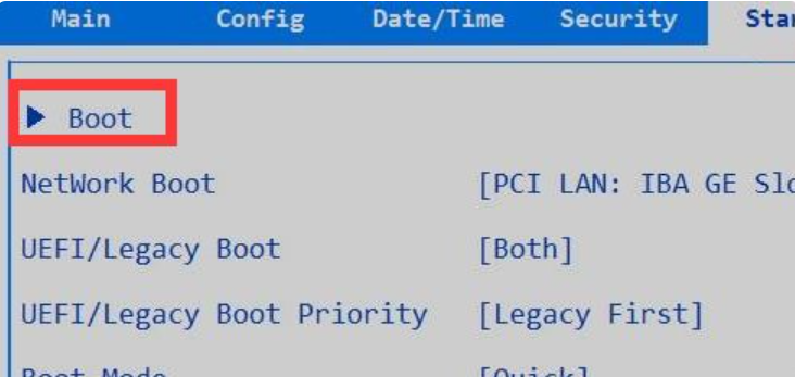 1、電腦開機(jī)按快捷鍵進(jìn)入BIOS,選擇startup,選擇boot,點(diǎn)擊回車鍵進(jìn)入。