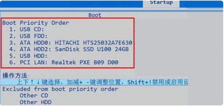 4、在頁(yè)面中,“1、2、3"三項(xiàng),分別代表著“第一項(xiàng)啟動(dòng)、第二項(xiàng)啟動(dòng)、第三項(xiàng)啟動(dòng)”。HDD就是硬盤啟動(dòng),USB FDD就是U盤啟動(dòng),CD就是光驅(qū)啟動(dòng)。將U盤調(diào)整到1。