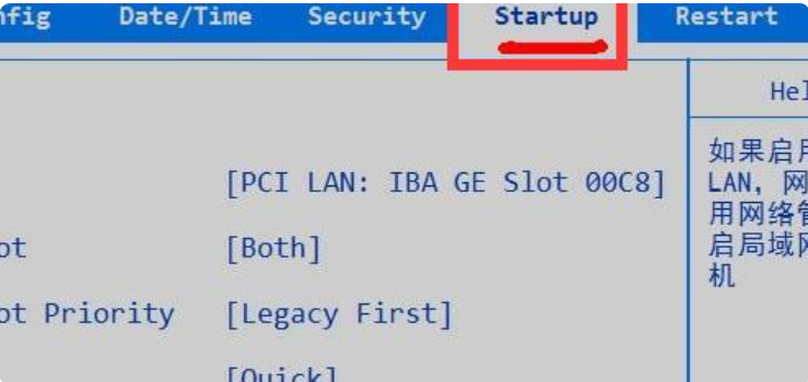 2、進(jìn)入了BIOS設(shè)置窗口,選擇startup。