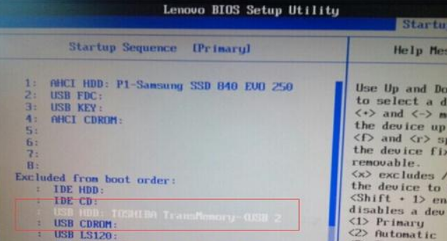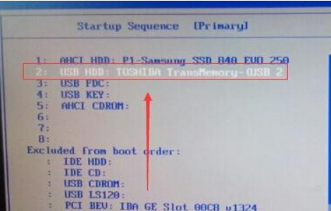 5、如果USB HDD在底部出現(xiàn)Excluded from boot order,就說明U盤項被BIOS排除;