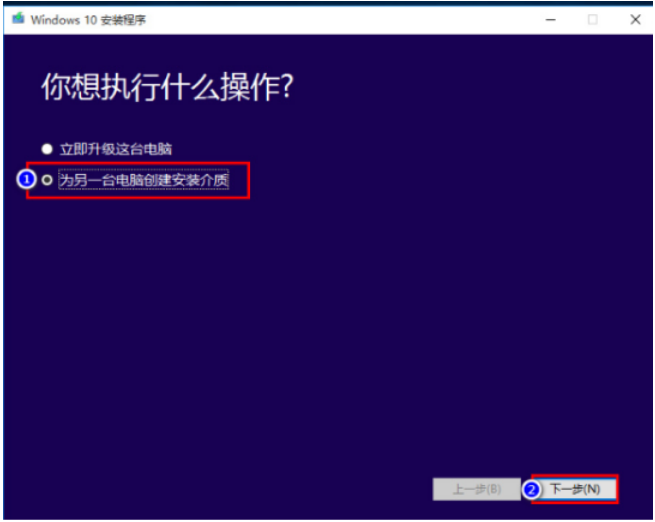3.雙擊打開工具,在進(jìn)入的界面時(shí)選擇【為另一臺(tái)電腦創(chuàng)建安裝介質(zhì)】。