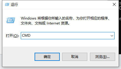 1、按下鍵盤win+R鍵,打開運行框,輸入CMD點擊確定,打開命令行窗口。