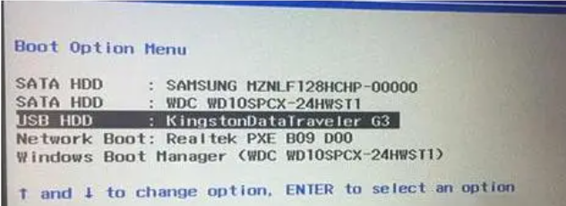 6.最終大家插進制做好的U盤啟動盤,重啟按F12或FN F12調(diào)出啟動管理的窗口,選擇USBHDD鑒別到U盤啟動按回車鍵進到PE就可以應用u盤重裝系統(tǒng)啦。