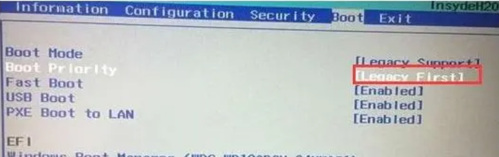 4.這時,大家將BootPriority設置為LegacyFirst,隨后依據(jù)F10在發(fā)生的窗口中選擇yes。