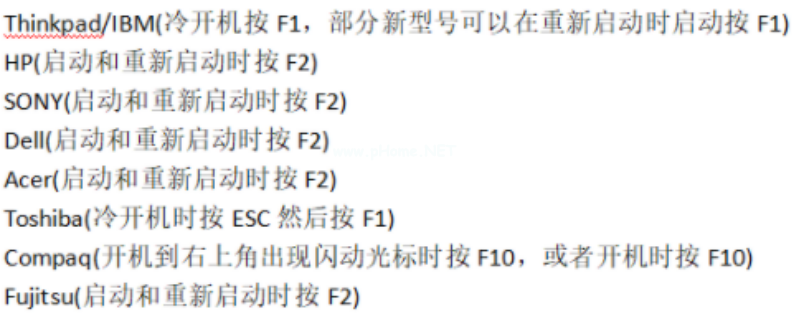2、筆記本方面,不同筆記本進(jìn)入BIOS方式不一樣,一般都是由主板決定的,某些特殊主板請看下圖: