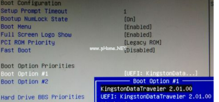 3、按ESC返回,再選擇Boot Option #1回車,選擇U盤選項(xiàng),回車,按F10保存重啟,重啟后就可以從U盤啟動。