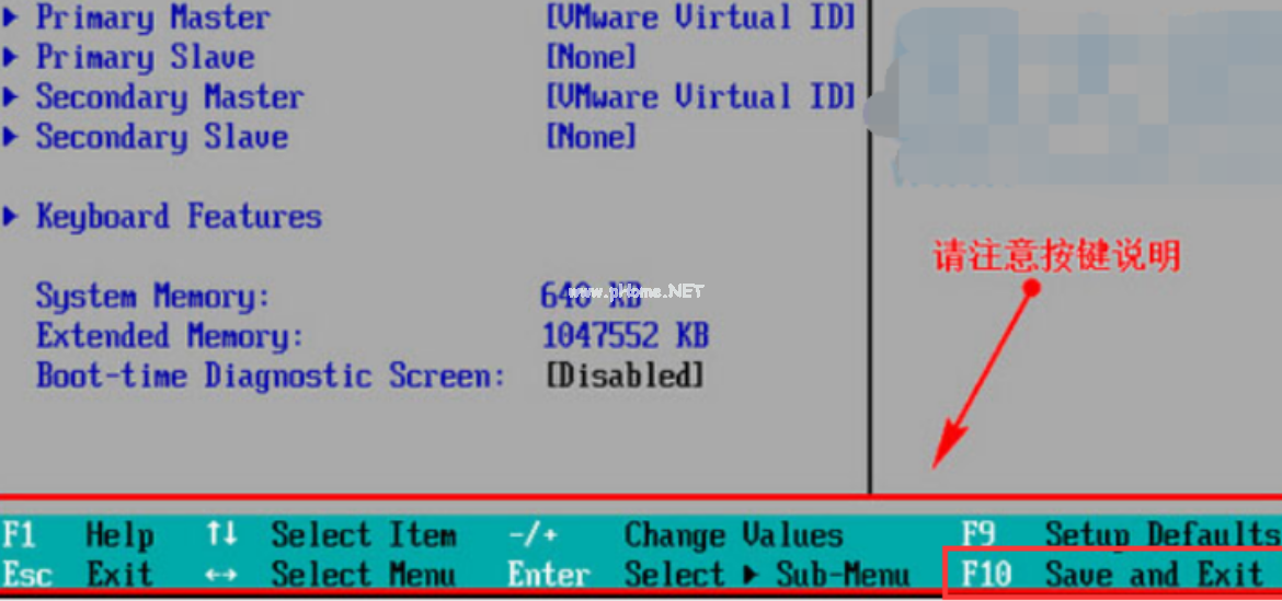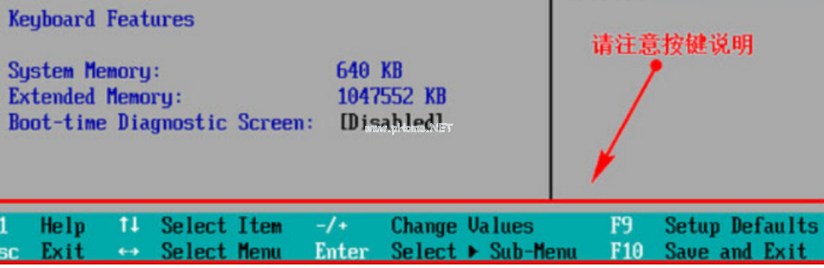 1.進(jìn)入bios界面設(shè)置,記住底部快捷鍵操作。