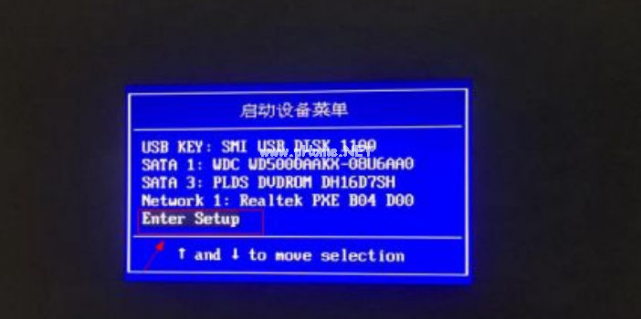 2.在啟動設(shè)備菜單窗口中,選擇“ENTER Setup”進(jìn)行BIOS設(shè)置。