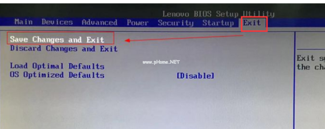 6.切換到exit界面,選擇save changes and exit項,或者按F10進(jìn)行保存退出。