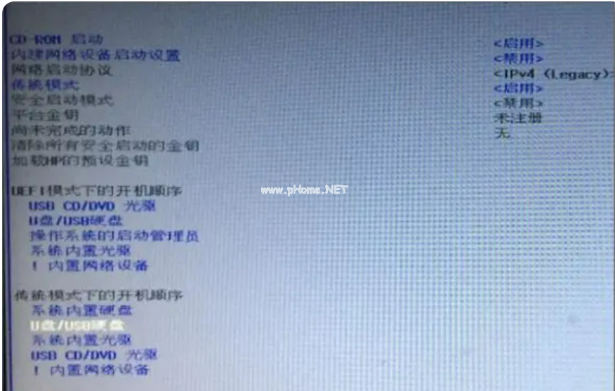 6,然后彈出很多開始選項(xiàng)的設(shè)置選項(xiàng),使用UEFI模式選擇此功能,舊筆記本將是傳統(tǒng)模式。