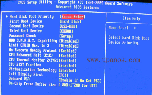 如上圖2:高級BIOS設(shè)置(Advanced BIOS Features)界面,首先選擇硬盤啟動優(yōu)先級:Hard Disk Boot Priority