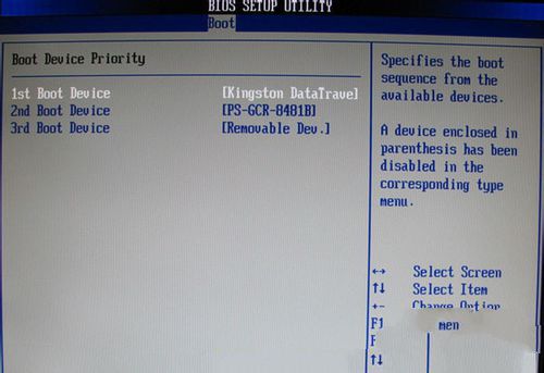 下圖1 :選擇Boot菜單界面設(shè)置U盤啟動;