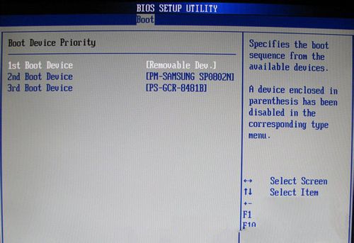 如果在圖1的硬盤驅(qū)動器“Hard Disk Drives”里面還沒選擇U盤為第一啟動設(shè)備,那么這里就不存在和顯示U盤,如上圖2所示,但可以選擇移動設(shè)備“Removable Dev.”作為第一啟動設(shè)備;