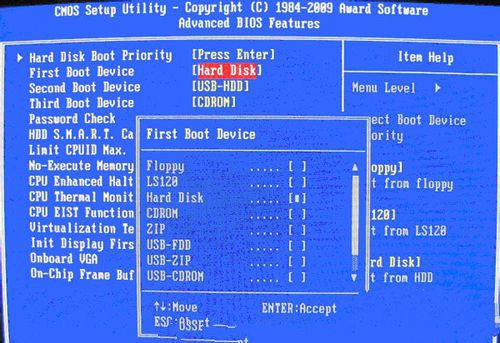 下圖2:高級BIOS設(shè)置(Advanced BIOS Features)界面,首先選擇硬盤啟動優(yōu)先級,Hard Disk Boot Priority;