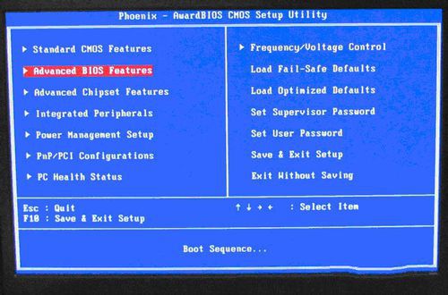 下圖1:開機(jī)按Del鍵進(jìn)入該BIOS設(shè)置界面,選擇高級BIOS設(shè)置,Advanced BIOS Features;