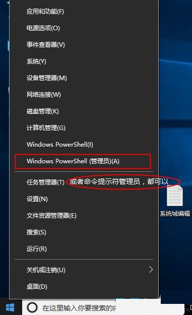1、鼠標(biāo)右鍵點擊開始圖標(biāo),選擇【windows powershell(管理員)】,或者命令提示符管理員;