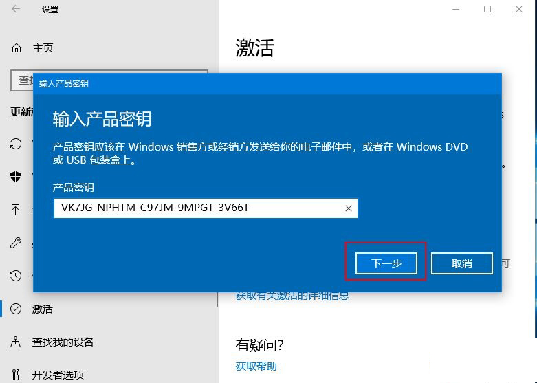 密鑰激活步驟說明:開始--設(shè)置--更新和安全--激活--更改產(chǎn)品密鑰。