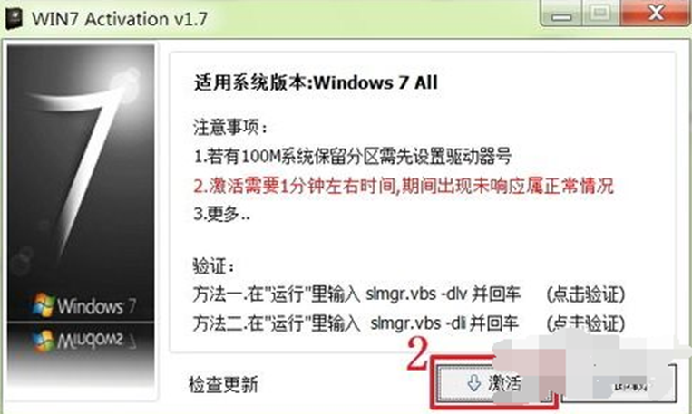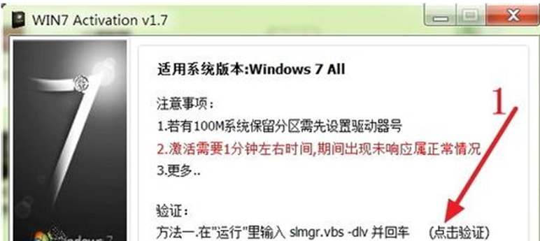 5.重新啟動(dòng)系統(tǒng)完成后,再次打開win7激活工具,點(diǎn)擊驗(yàn)證方法一開始驗(yàn)證是否已經(jīng)成功激活。