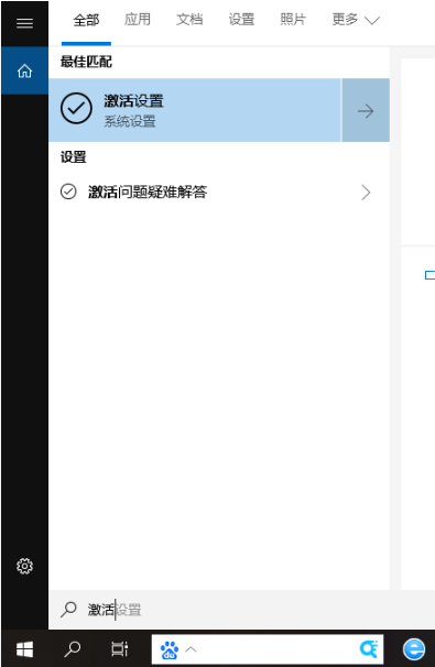 1、點擊搜索,輸入激活設(shè)置,點擊進(jìn)入。