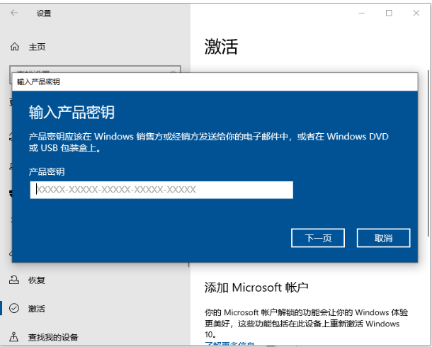 5、接著就是輸入win10專業(yè)版密鑰,然后等待激活即可。