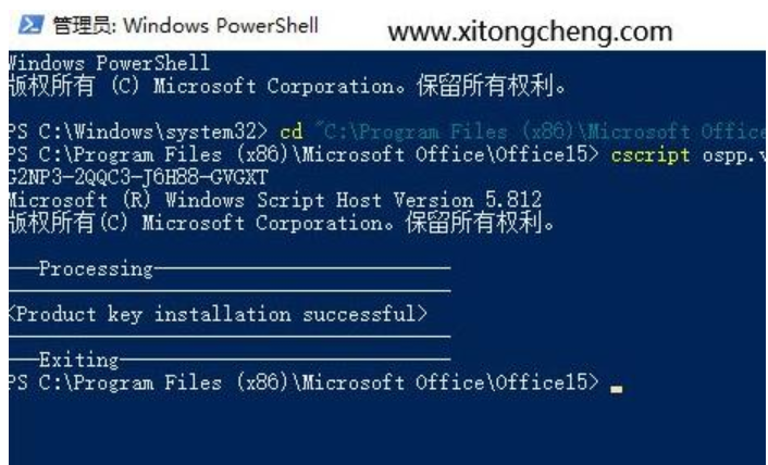 4、接著執(zhí)行這個命令,安裝Office2013激活密鑰;