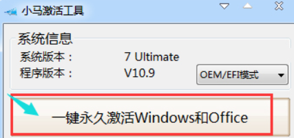 4、運行后,會出現(xiàn)小馬Win7激活工具界面,點擊“一鍵永久激活Windows和Office”。
