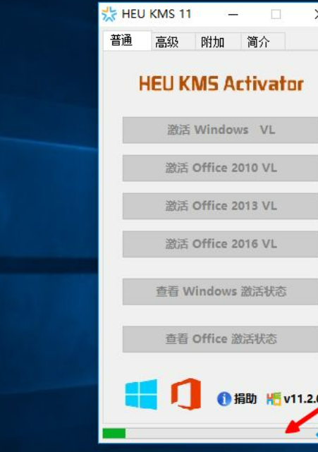 2、開始執(zhí)行kms激活win10過(guò)程,界面變成灰色,底部有個(gè)綠色進(jìn)度條,等待即可;