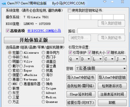 5、當(dāng)然小馬win7激活工具(OEM 7F7)還有一個高級設(shè)置,在圖2中只要勾選“高級選項”,就會出現(xiàn)高級選項框,這時候大家也可以根據(jù)自己的要求進(jìn)行設(shè)置并激活。