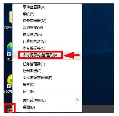 在開始菜單上,點(diǎn)擊鼠標(biāo)右鍵,選擇命令提示符{管理員}