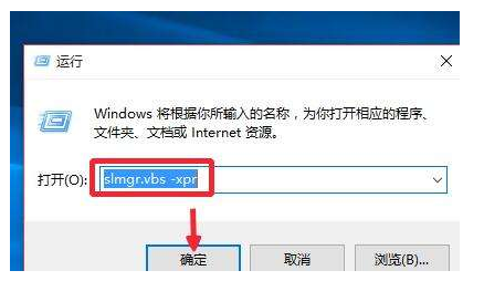 操作完以上步驟后,按win+r打開運(yùn)行,輸入命令slmgr.vbs -xpr,點(diǎn)擊確定,進(jìn)行查看。