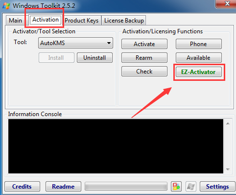 4、找到并選擇“Activation”頁面,選擇“EZ-Activator”后,就可以進行一鍵激活了。