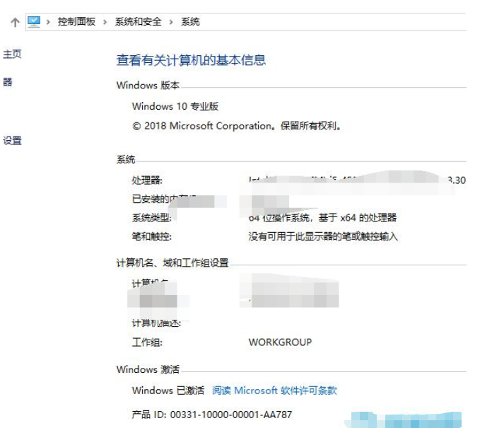 6、win10專業(yè)版系統激活完成后,在系統屬性界面中我們可以看到win10專業(yè)版密鑰已經成功的激活了win10專業(yè)版系統。