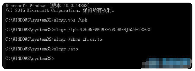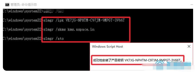 4、所有的代碼輸入完畢后稍等片刻,只要您輸入的win10專業(yè)版密鑰能通過微軟的激活認證機制,那么就會彈出成功地激活了產品密鑰XXX這樣的提示。