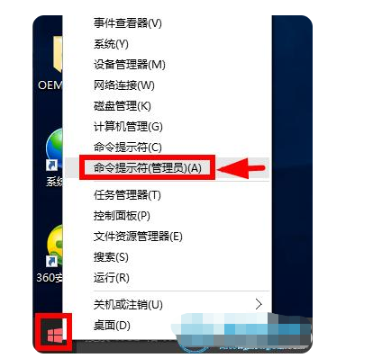 2、那么win10激活密鑰怎么使用呢?首先進入要激活的win10專業(yè)版系統后,鼠標右鍵開始按鈕,選擇命令符號符功能打開。