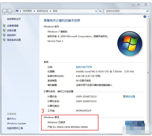 3、然后在出現的界面中也可以看出Win7操作系統(tǒng)已經激活。