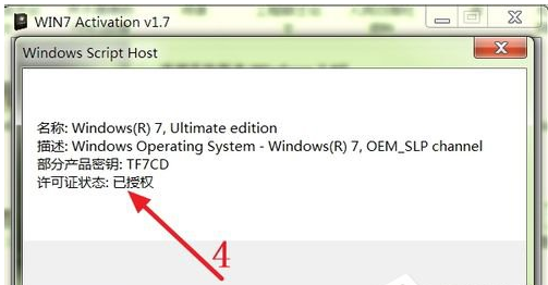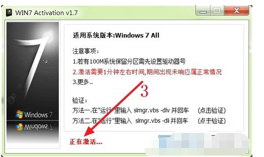 3、從下圖紅色箭頭所指的地方能夠看出,程序正在激活Win7操作系統(tǒng);