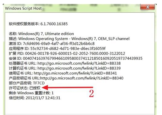 2、從下圖可以看出Win 7系統(tǒng)的許可證狀態(tài)是“已授權”;