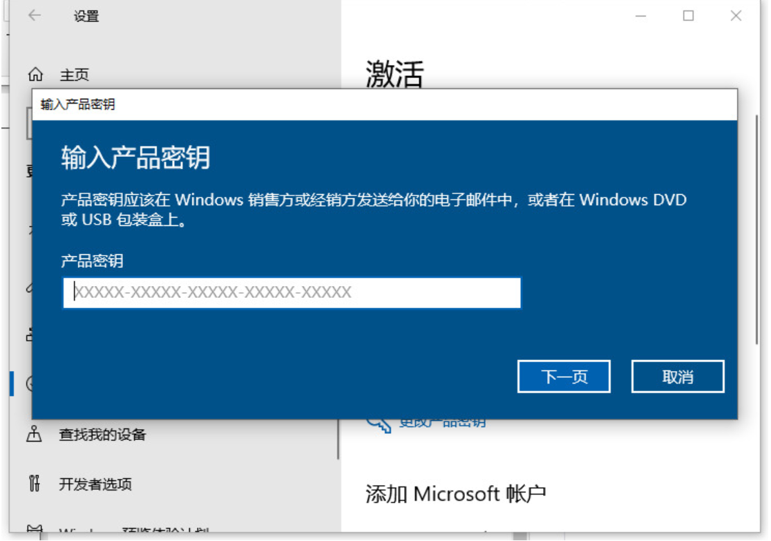 4、接著輸入win10激活密鑰,點擊下一步執(zhí)行激活即可;