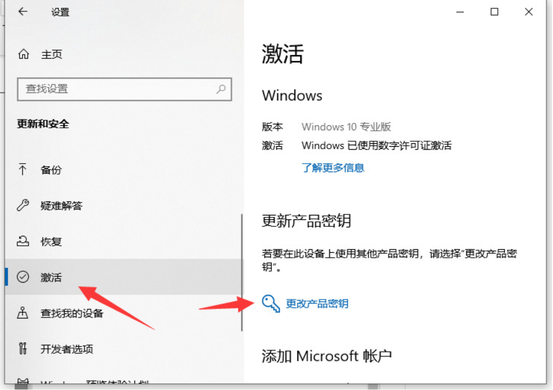 3、然后選中左側(cè)的激活,再點擊右側(cè)的更改產(chǎn)品密鑰;