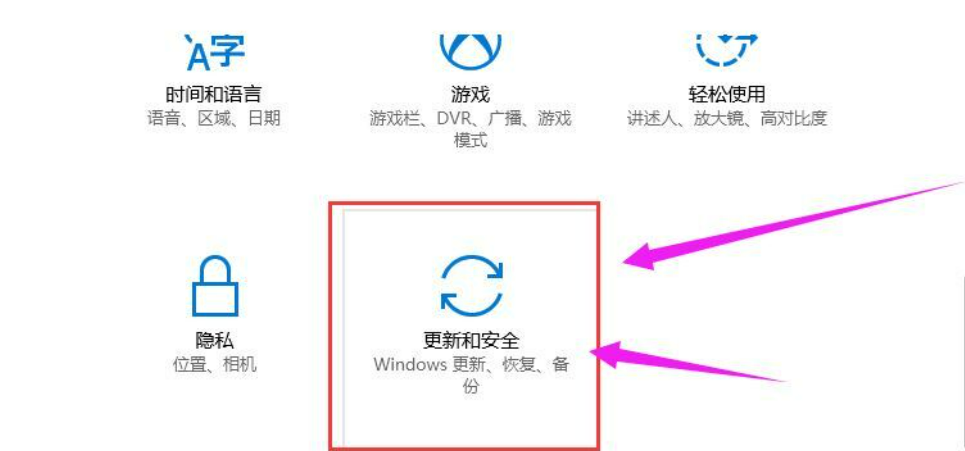 2.點(diǎn)擊“更新和安全”;