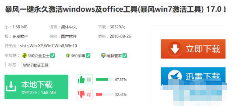 軟件版本:暴風(fēng)win7激活工具 v17.0