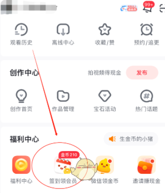 1、打開打開愛奇藝app,找到福利中心,可以通過簽到領(lǐng)會員。該活動是長期有效的。