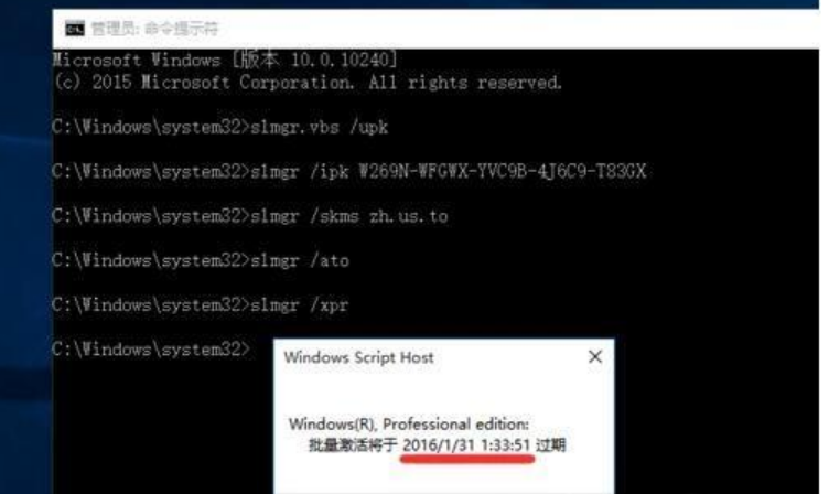 6.在此我們可以查看一下此密鑰的激活天數(shù),輸入以下命令:slmgr /xpr 按回車鍵后,將彈出窗口,提示”批量激活的過期時(shí)間”。當(dāng)此激活操作過期后,我們只需要重新激活一次,即可再享受180天激活機(jī)會(huì);