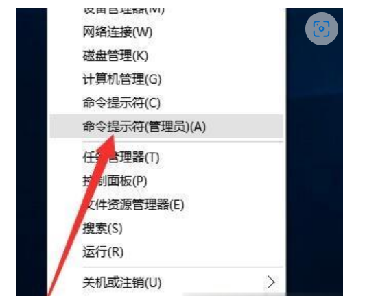 1.右擊桌面左下角的“Windows”按鈕,從彈出的右鍵菜單中選擇“命令提示符(管理員)”項(xiàng);
