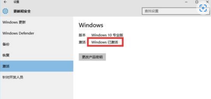 8.從打開的“設(shè)置”界面中,點(diǎn)擊“更新和安全”按鈕進(jìn)入,切換到“激活”選項(xiàng)卡,就可以看到當(dāng)前Win10正式版已激活。