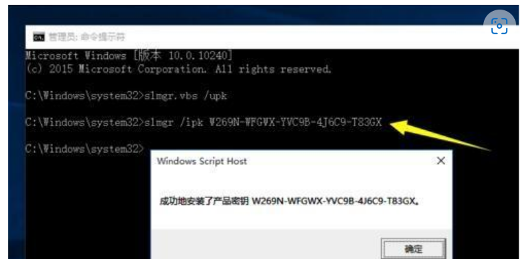 3.接下來再輸入以下命令:slmgr /ipk W269N-WFGWX-YVC9B-4J6C9-T83GX 按回車鍵后將彈出“成功的安裝了產(chǎn)品密鑰”的提示窗口。注:此步驟非常重要,需要根據(jù)所安裝的操作系統(tǒng)版本選擇正確的密鑰;