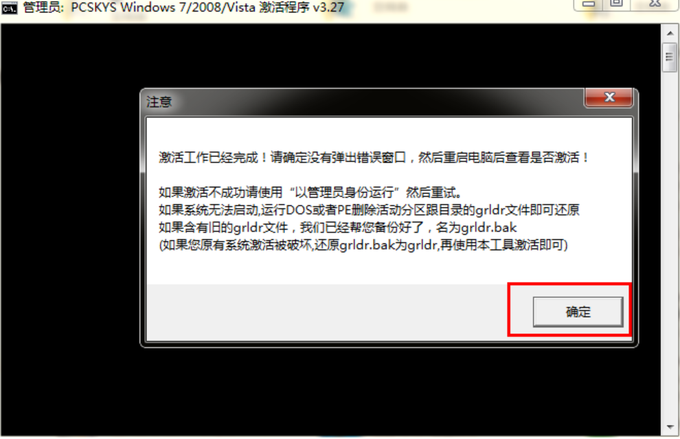 4、最后大家會看到軟件正在自動安裝激活程序到C:盤,這段時間預計也就10秒鐘以內(nèi),安裝完成之后會再次跳出一個界面,只要點擊確定便可激活成功。