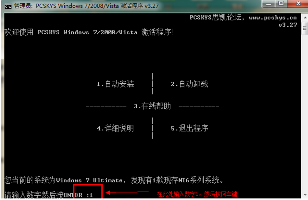 3、這時大家在下方輸入數(shù)字“1”,并按回車鍵確認。